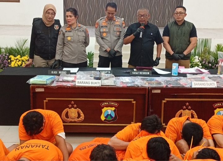 Rilis tersangka pesta gay di Mako Polrestabes Surabaya (Foto: kabarfokus.id)