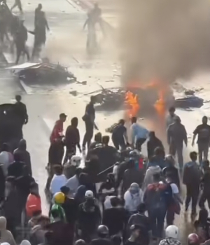 Diperkirakan lebih dari 21 motor terbakar dalam aksi Solidaritas Darurat Kekerasan yang berlangsung di Gedung Negara Grahadi, Jumat (29/8/2025).