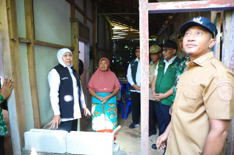 Gubernur perempuan pertama di Jatim ini berkesempatan meninjau 2 unit rumah atas nama Pargiyem, RT 001/RW 02 Ngasem Bolosingo dan Tulus RT 002/RW 02 Ngasem Bolosingo di Kec. Pacitan yang siap direnovasi.