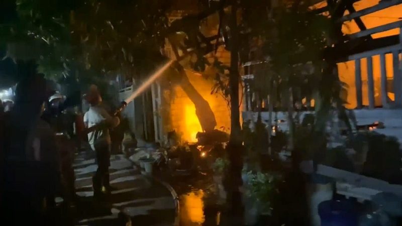 Sebuah rumah semi permanen di lingkungan padat penduduk di Kota Lamongan Jawa Timur ludes terbakar pada Jumat 01.30 dinihari (13/09/25).