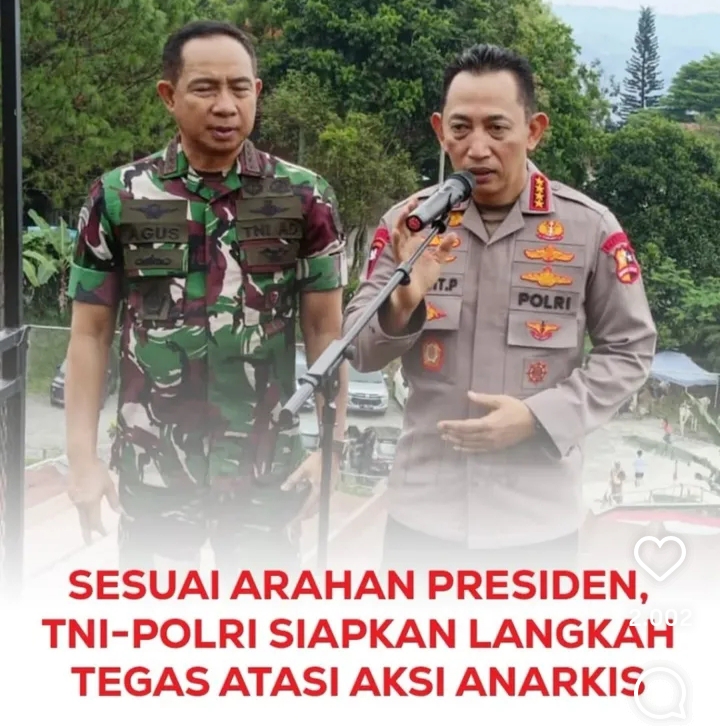 Presiden Prabowo meminta Panglima TNI Jenderal Agus Subiyanto dan Kapolri Jenderal Listyo Sigit Prabowo, untuk menindak tegas massa anarkis.